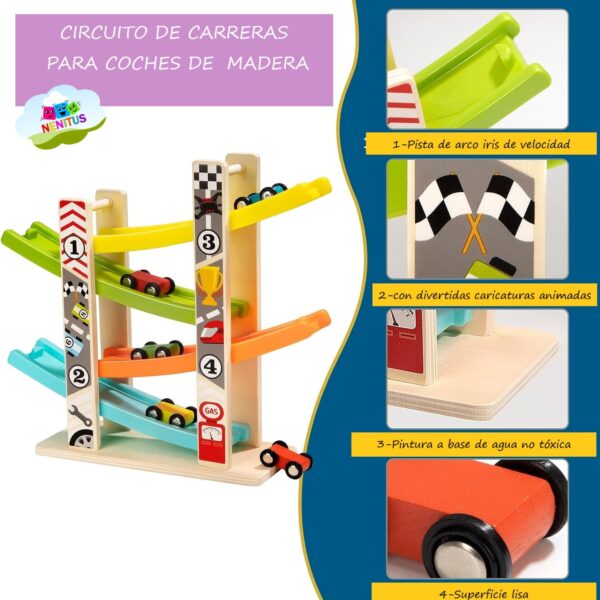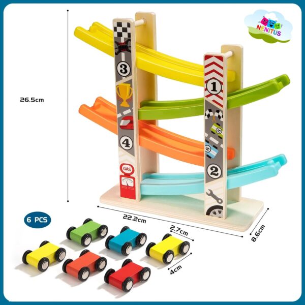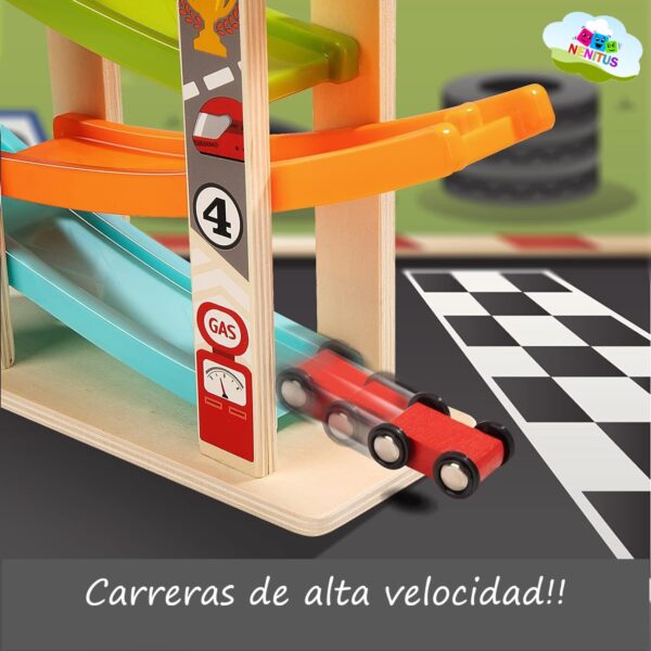 Con 4 rampas y 6 mini coches de carreras de diferentes colores, ofrece un fascinante movimiento continuo y mucho tiempo de juego dinámico,