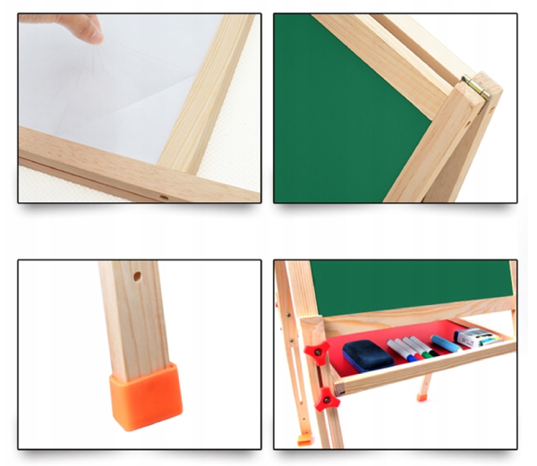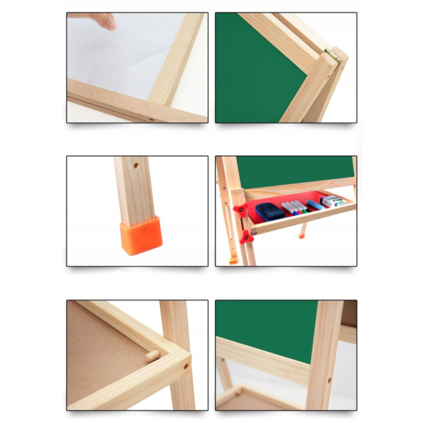 La creatividad no tiene límites con esta práctica pizarra caballete, para pequeños y no tan pequeños, ya que la estructura de madera permite ajustar la altura e inclinación, con una pizarra magnética en un lado para escribir y pizarra de tiza en el otro para dibujar y colorear.